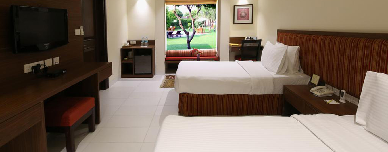 Within easy reach of the main Industrial town of Bhiwadi and Manesar, Lemon Tree Hotel Tarudhan Valley is a peaceful place with breathtaking views of the mountains, tranquil water bodies, and lavish surroundings. It has about 70 elegantly furnished rooms offering breath-taking view of Golf Course. The hotel also features a room specifically designed for the differently abled person with special amenities. All Rooms are appointed with all modern amenities like LED TV, tea/ coffee maker, mini-fridge, Wi-Fi, work desk and chair. There are 3 conference halls equipped with all state-of-the-art amenities and can accommodate up to 120 guests.